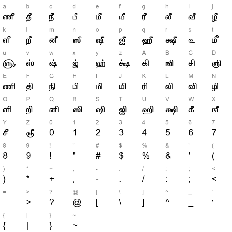 Font Name TAM Tamil012 Normal Font Version 1.0 Fri Jun 25 21:33:24 1999 Font Style Normal Weight 400 Font Type TrueTypeFonts Font Embedding Unknown Font Tags TAM Tamil012 Normal Number of Glyphs 217 Font File Size 82.35 KB Total Downloads 93 Font Rating 3/5